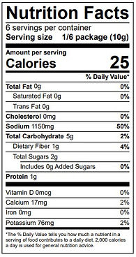 Old Bay: Nutrition Facts servings per container 10, Serving size _ cup, 1 oz (28g), Amount per serving: Calories 170, Total Fat 13g (17% DV), Saturated Fat 3g (15% DV), Trans Fat 0g, Cholesterol 0mg (0% DV), Sodium 250mg (11% DV), Total Carbohydrate 6g (2% DV), Dietary Fiber 4g (14% DV), Total Sugars 1g, Includes 0g Added Sugars (0% DV), Protein 7g, Vitamin D 0mcg (0% DV), Calcium 14mg (2% DV), Iron 0mg (0% DV), Potassium 196mg (4% DV). %DV = %Daily Values